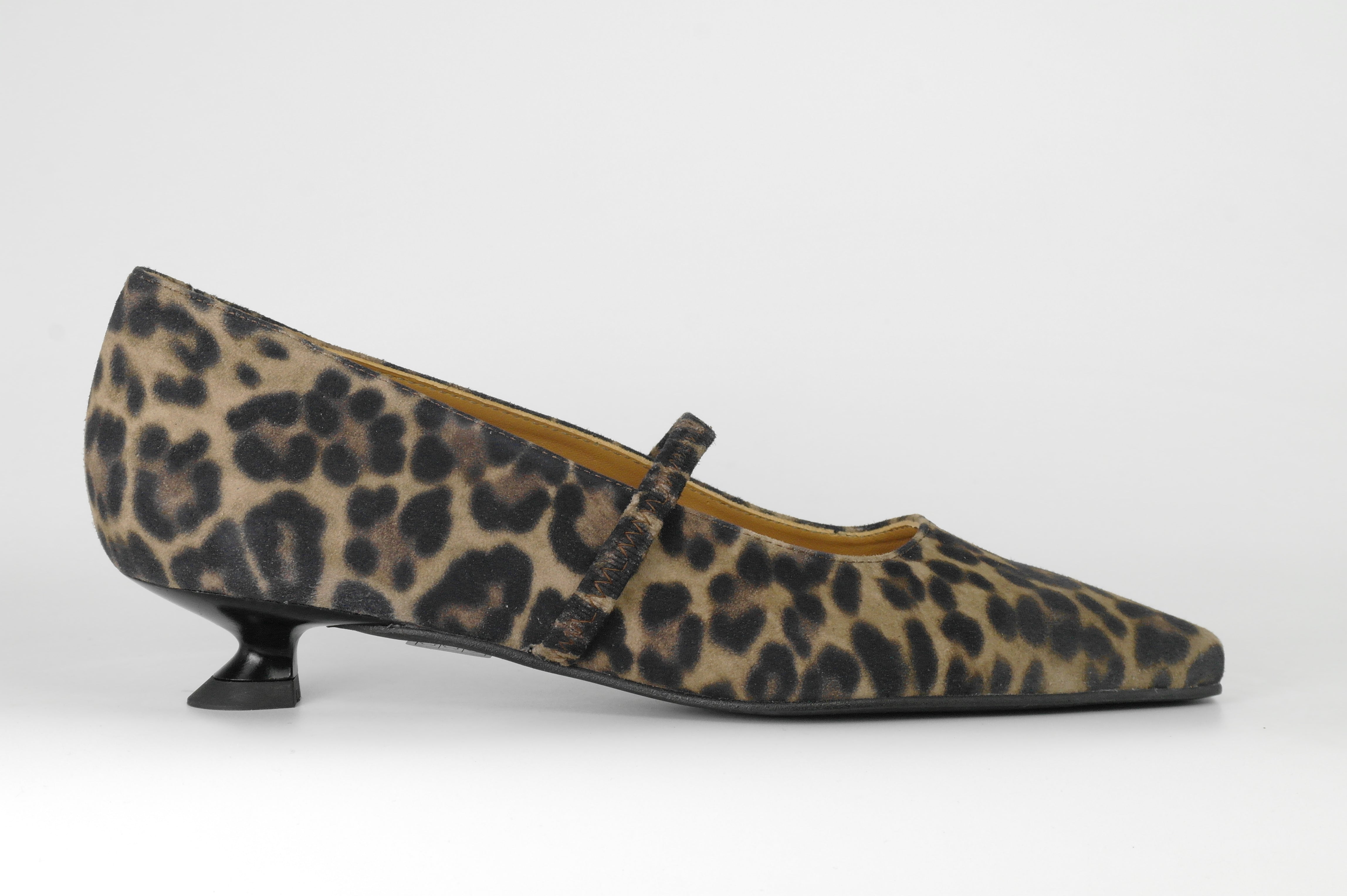 DAMESSCHOENEN PUMP LEOPARD DAIM ZOOL RUBBER
