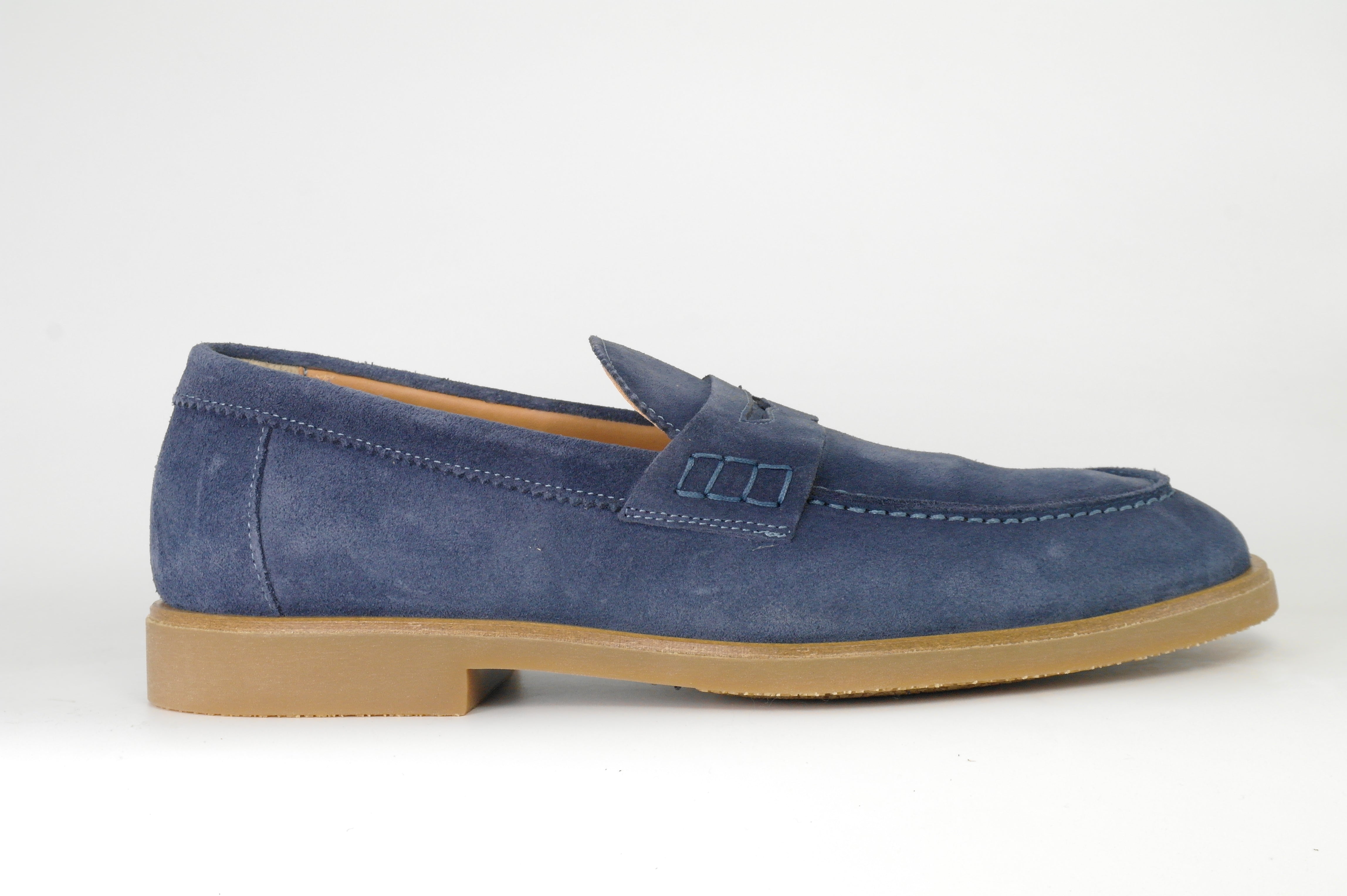 HERENSCHOENEN MOCASSIN BLAUW DAIM ZOOL RUBBER