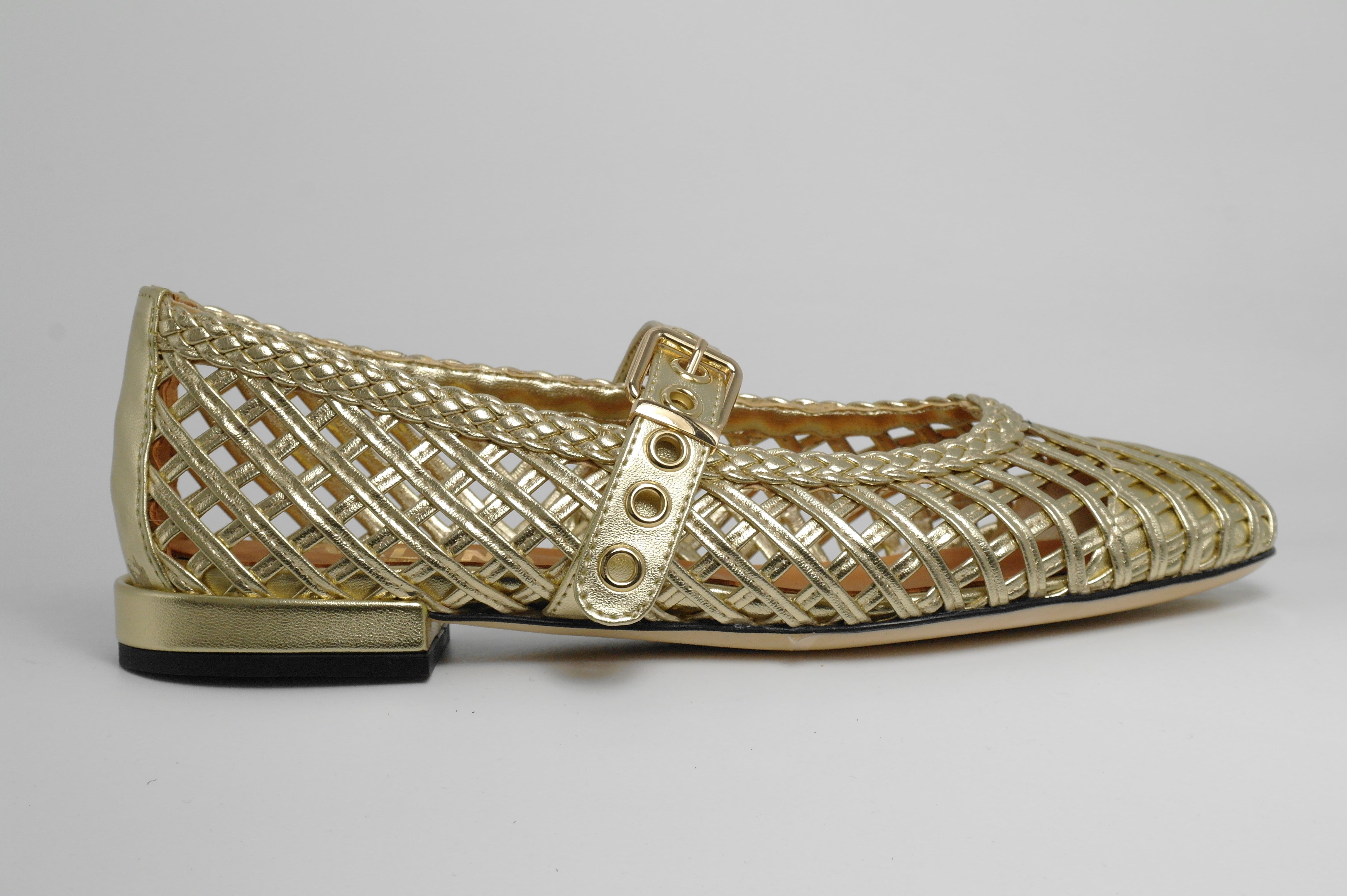DAMESSCHOENEN BALLERINA GOUD LEDER ZOOL RUBBER