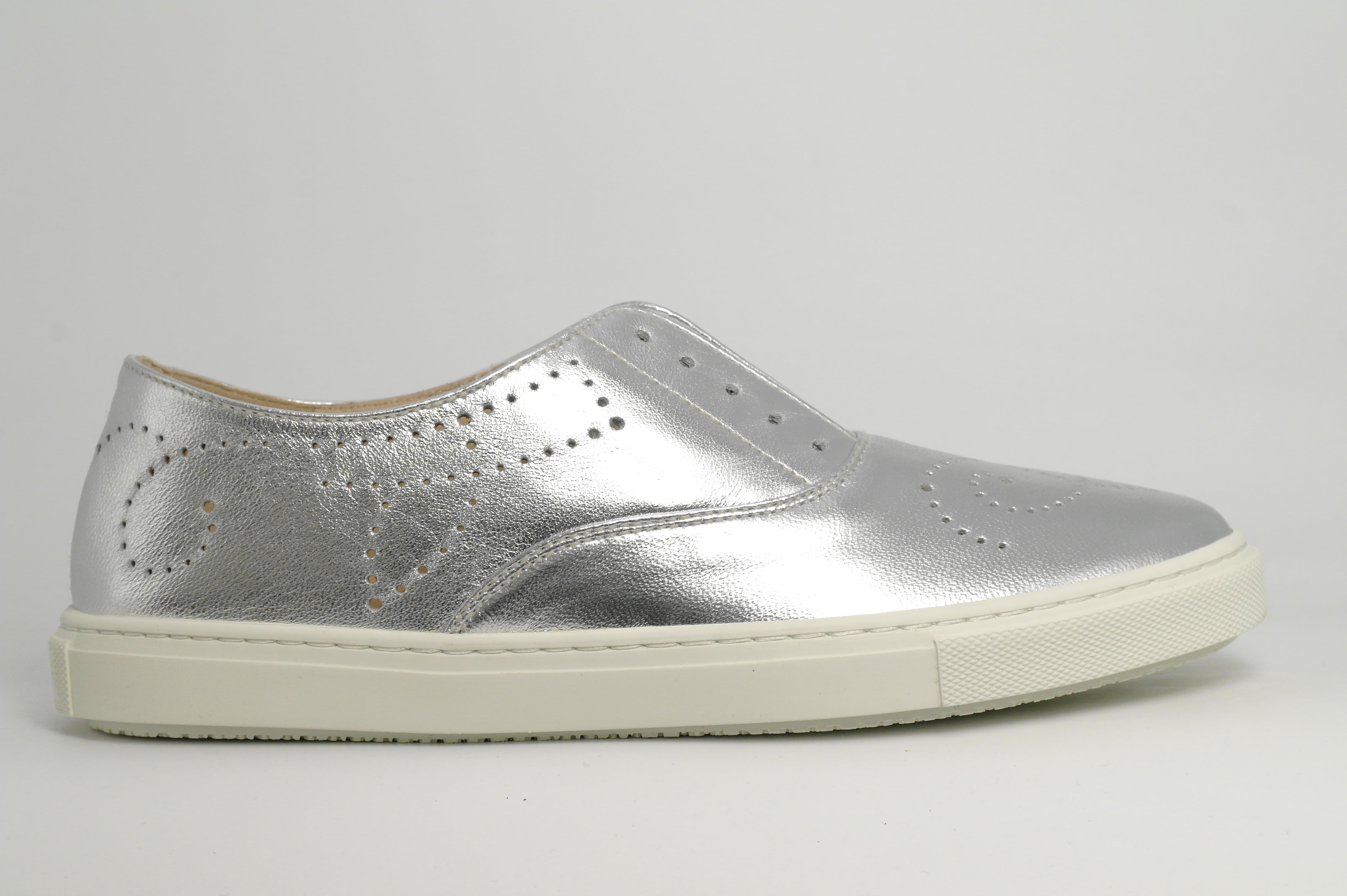 DAMESSCHOENEN SLIP ON ZILVER LEDER ZOOL RUBBER