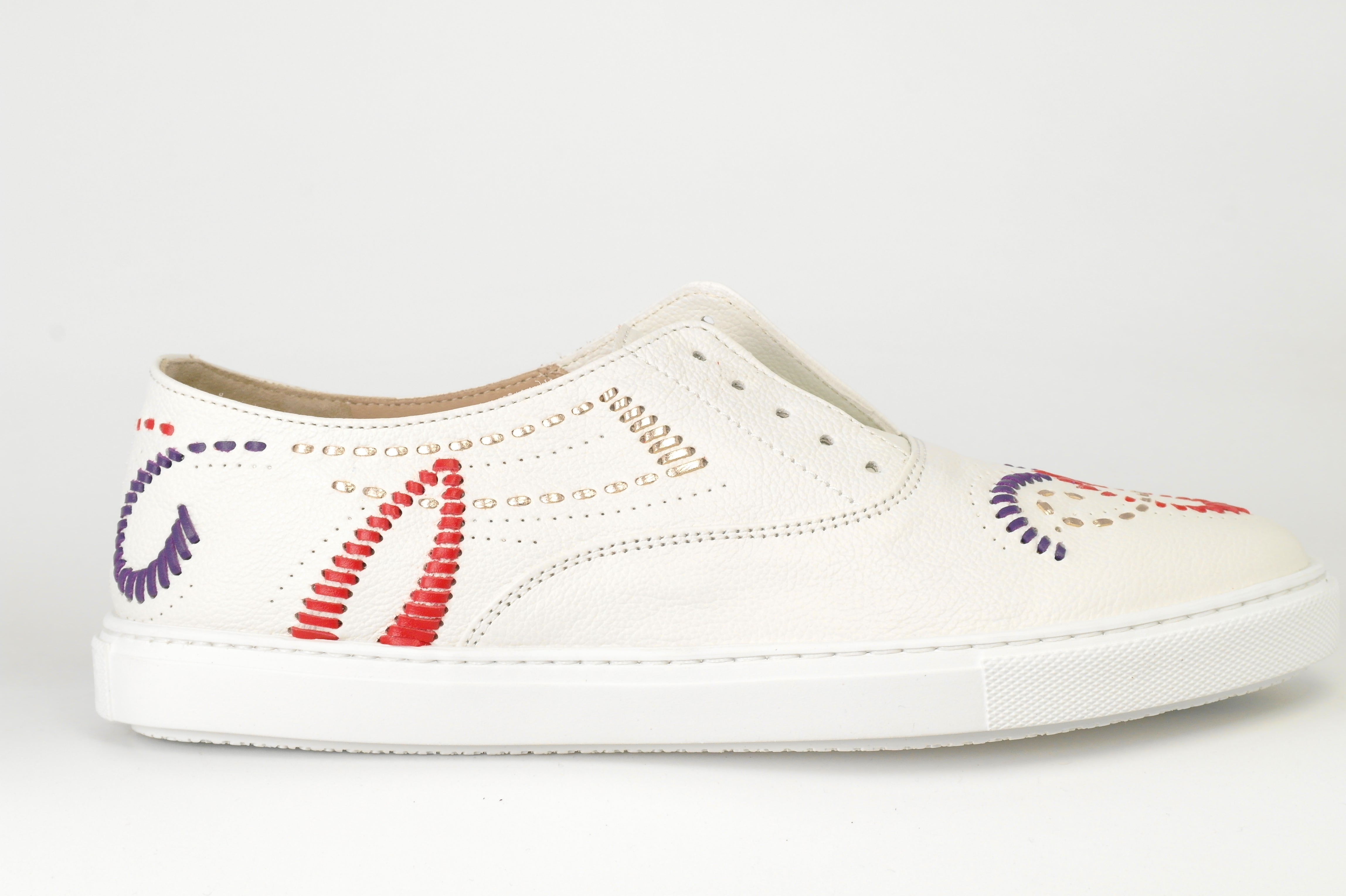DAMESSCHOENEN SLIP ON WIT LEDER ZOOL RUBBER
