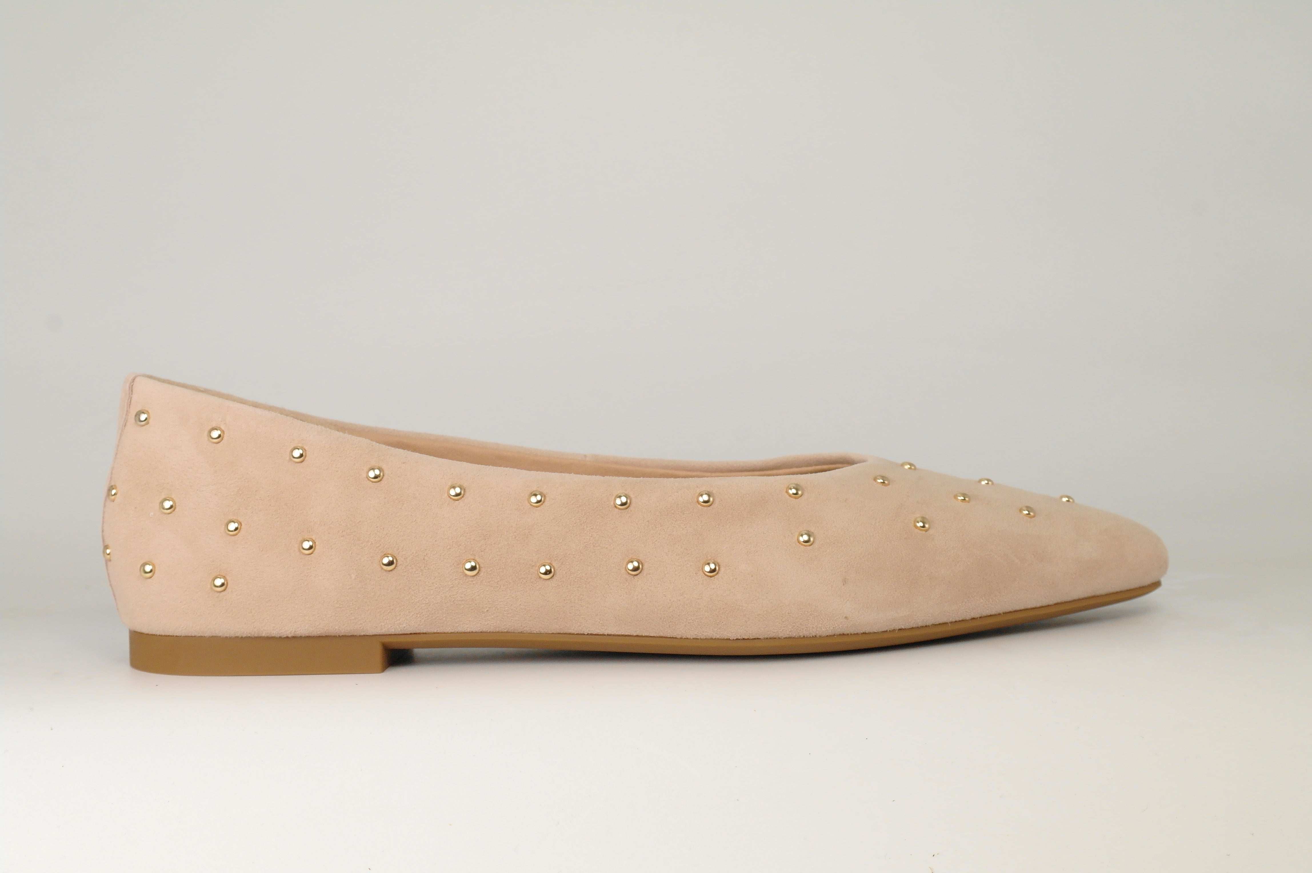 DAMESSCHOENEN BALLERINA ROZE NUDE DAIM ZOOL RUBBER