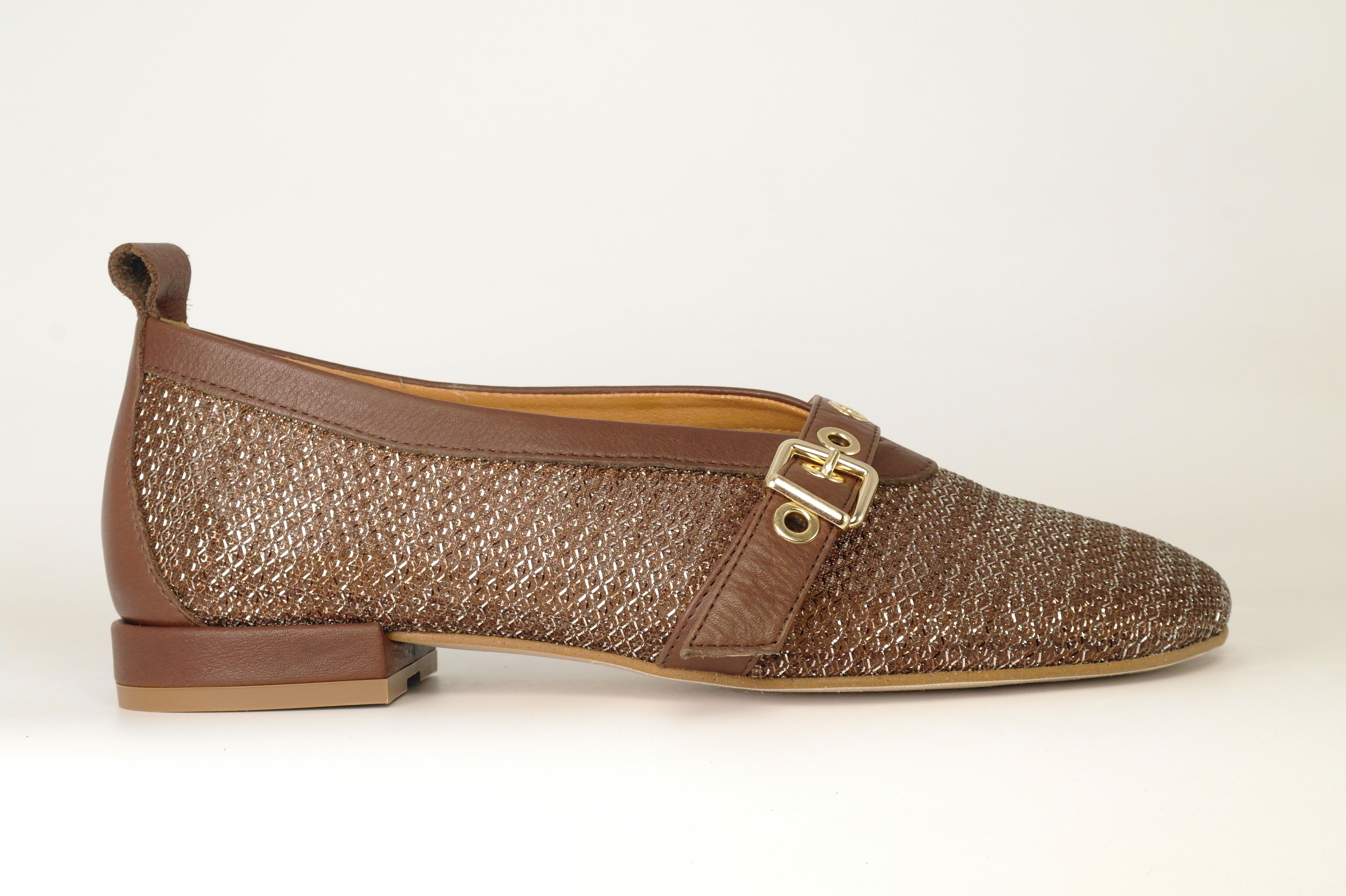 DAMESSCHOENEN BALLERINA BRUIN LEDER